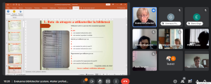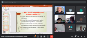 Subiecte discutate: cadrul de referință al evaluării, gradul de obligativitate și termenul de evaluare, scopul și importanța evaluării bibliotecilor școlare, criterii minime obligatorii pentru evaluarea bibliotecilor școlare, structura și conținutul portofoliului de evaluare.