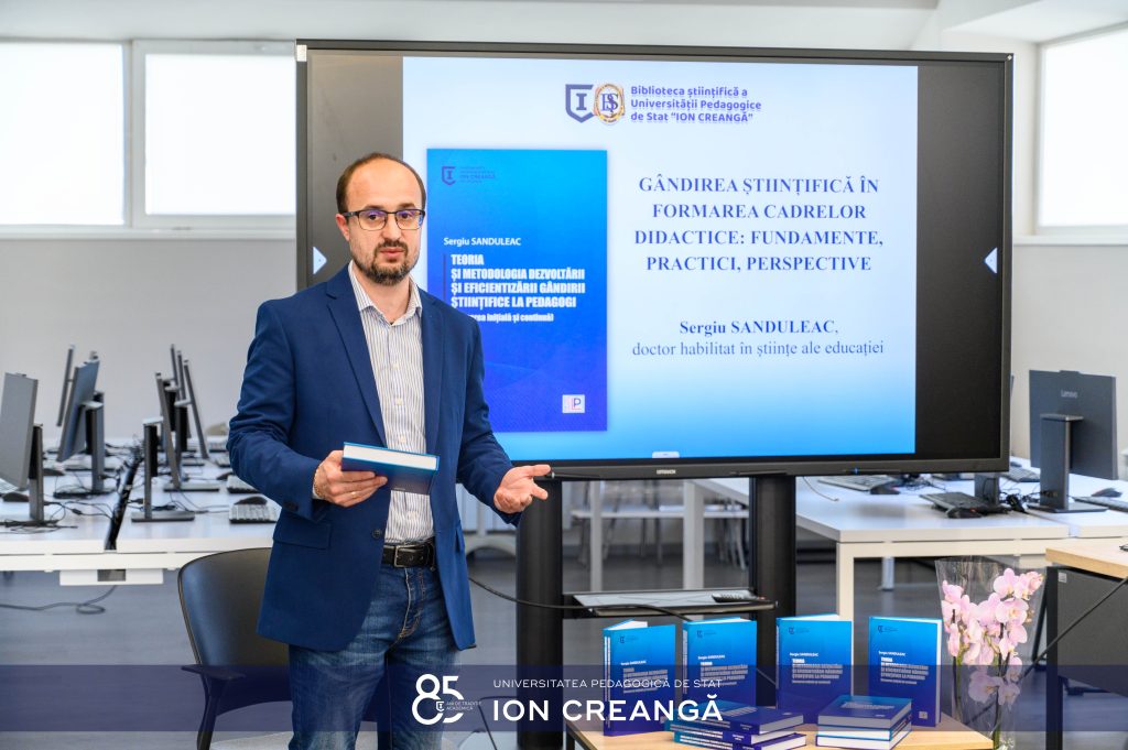 Astăzi, 14 mai 2025, în ambianța primitoare a Centrului de Informare și Documentare al Bibliotecii Științifice Universitare, a avut loc lansarea cărții „Teoria și metodologia dezvoltării și eficientizării gândirii științifice la pedagogi (formarea inițială și continuă)”, semnat de Dl Sergiu Sanduleac, dr. în psihologie și dr. hab. în științe ale educației – personalitate marcantă în spațiul academic, cunoscut pentru contribuțiile sale valoroase în domeniul educației și psihologiei.