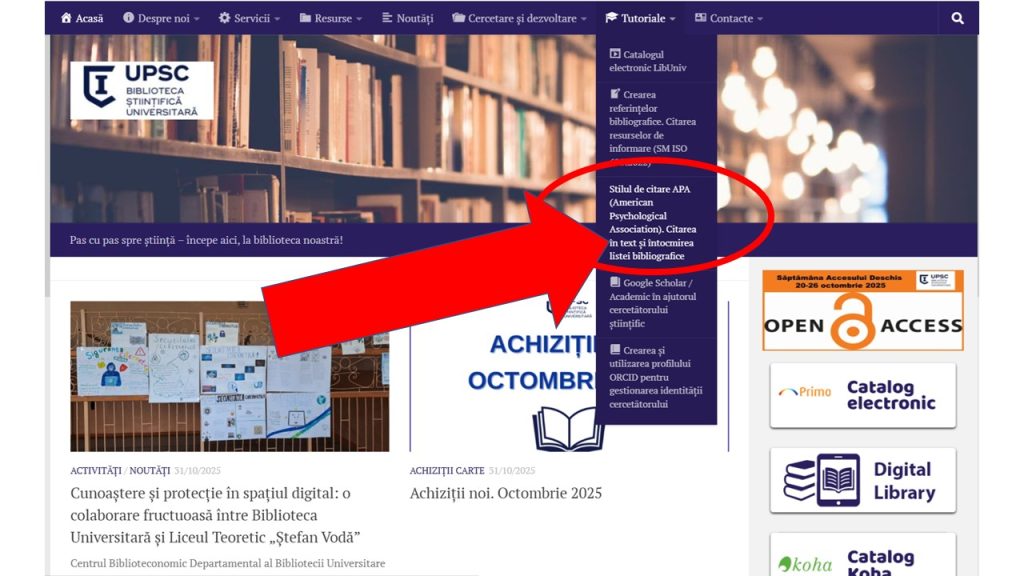 Biblioteca Universitară a elaborat un nou tutorial: „Stilul de citare APA (American Psychological Association). Citarea în text și întocmirea listei bibliografice”