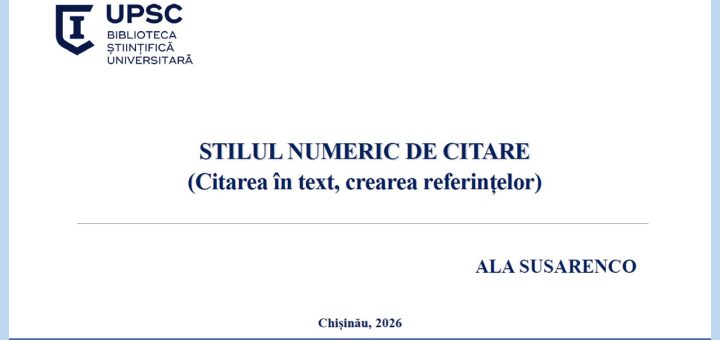 Un nou tutorial realizat la Biblioteca Științifică UPSC este dedicat stilului numeric de citare, unul dintre cele mai utilizate sisteme de referințe în lucrările științifice, în special în domeniile tehnice, medicale și ale științelor exacte....