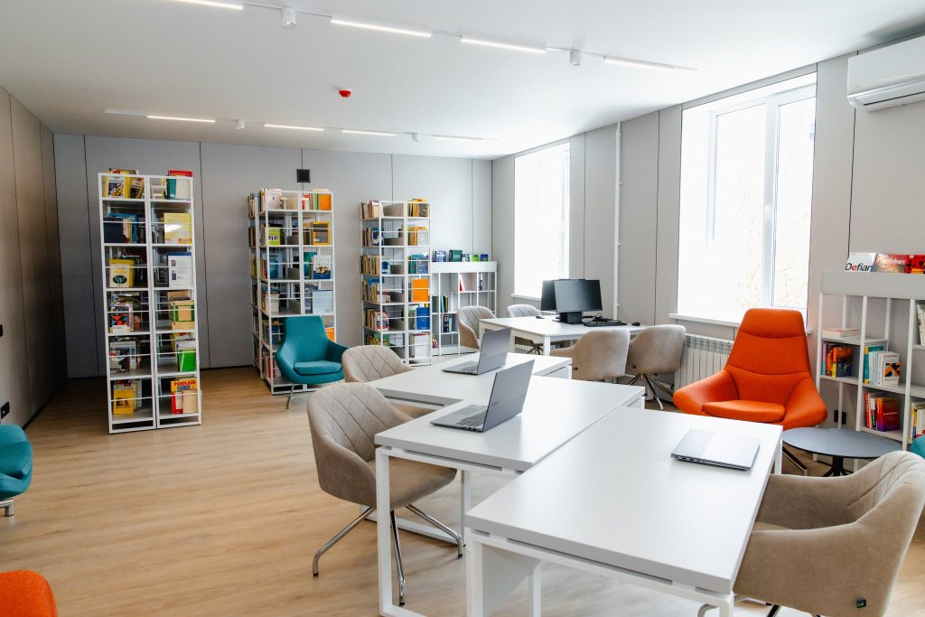Noua bibliotecă oferă utilizatorilor acces la resurse informaționale diversificate și tehnologii moderne, transformând experiența de studiu într-una mai eficientă, interactivă și adaptată mediului digital. Reconfigurarea spațiului pune accent pe confort, accesibilitate și susținerea activităților academice.
