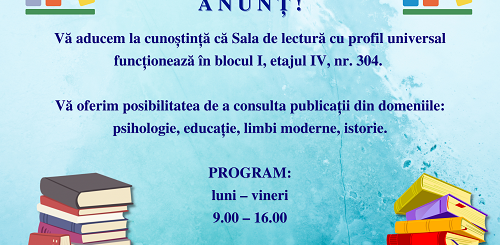 În data de 13 decembrie 2019, în incinta Bibliotecii Ştiinţifice a Universităţii Pedagogice de Stat „Ion Creangă” din Chişinău s-a desfășurat Workshopului profesional „BIBLIOTECILE ȘCOLARE: INTERCONECTARE, CONSOLIDARE, PARTICIPARE”. Activitatea a fost organizată și desfășurată de Biblioteca Ştiinţifică a Universităţii Pedagogice de Stat „Ion Creangă” în colaborare cu secțiunea Biblioteci din Învățământ și specializate din cadrul Asociației Bibliotecarilor din Republica Moldova și Biblioteca Naţională a Republicii Moldova.