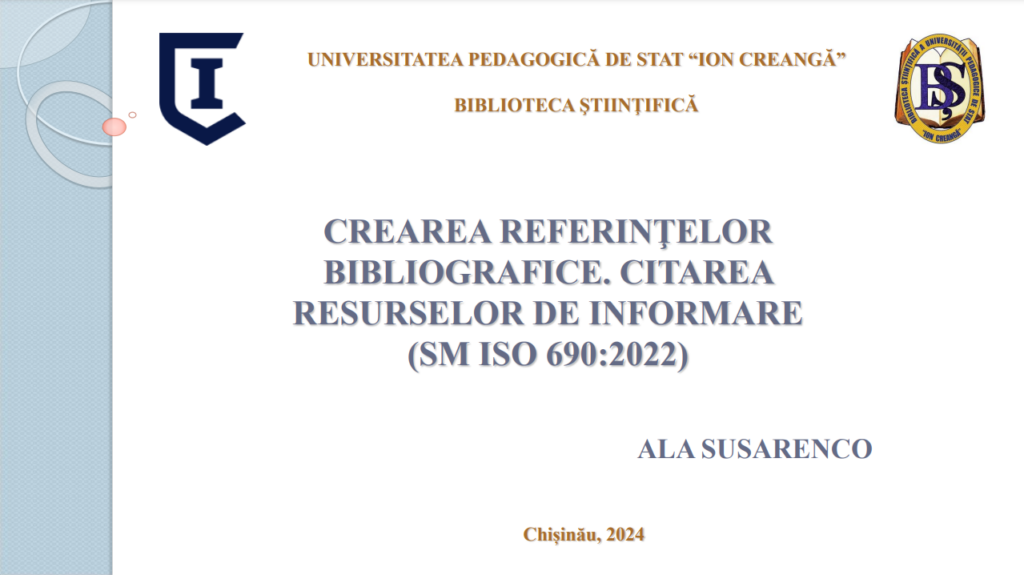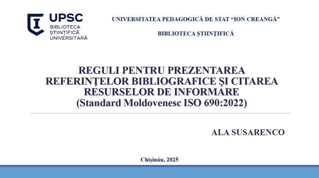 Crearea referinţelor bibliografice. Citarea resurselor de informare (SM ISO 690:2022)
